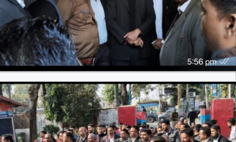अधिवक्ताओं ने किया थाने का घेराव, पुलिस पर लापरवाही के आरोप—कार्रवाई न होने पर आंदोलन की चेतावनी।