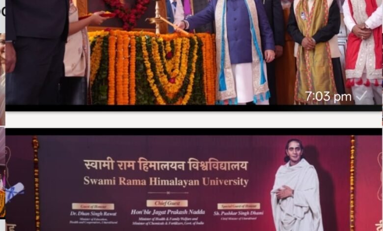 स्वामी राम हिमालयन विश्वविद्यालय (एसआरएचयू), जॉलीग्रांट में शनिवार को विश्वविद्यालय का आठवां दीक्षांत समारोह गरिमामय वातावरण में संपन्न हुआ। समारोह के मुख्य अतिथि केंद्रीय स्वास्थ्य एवं परिवार कल्याण मंत्री एवं रसायन एवं उर्वरक मंत्री जेपी नड्डा रहे। कार्यक्रम में उत्तराखंड के मुख्यमंत्री पुष्कर सिंह धामी अति विशिष्ट अतिथि तथा राज्य के शिक्षा एवं स्वास्थ्य मंत्री धन सिंह रावत विशिष्ट अतिथि के रूप में उपस्थित रहे। एसआरएचयू का आठवां दीक्षांत समारोह शिक्षा, संस्कृति और प्रेरणा का संगम बनकर सफलतापूर्वक संपन्न हुआ।
