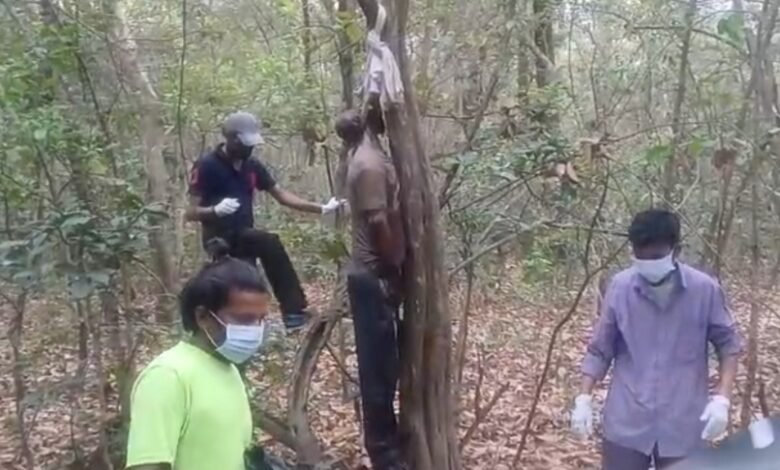 पुलिस ने कुआंवाला जंगल से पेड़ से लटका हुआ शव किया बरामद।