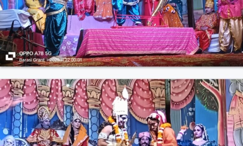 बड़ासी ग्रांट रामलीला के दूसरे दिन धनुष यज्ञ और राम–सीता विवाह के प्रसंगों का मंचन।
