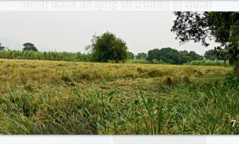 बारिश और हवा से धान की फसलों को भारी नुकसान किसानों के चेहरे पर छाई मायूसी।,