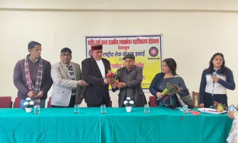 शहीद दुर्गामल्ल राजकीय स्नातकोत्तर महाविद्यालय डोईवाला की एन एस यूनिट का विशेष शिविर का शुभारंभ नगरपालिका अध्यक्ष नरेंद्र सिंह नेगी के द्वारा किया गया।