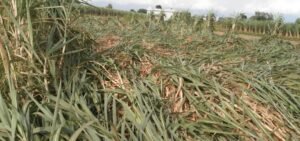 तेज बारिश और तेज हवाओं से गन्ने की फसल बुरी तरह चौपट, धान की फसल को भी हुआ भारी नुकसान।
