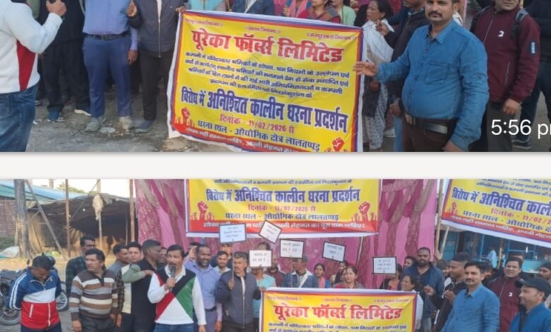 लालतप्पड़ में श्रमिक शोषण के खिलाफ आंदोलन सातवें दिन भी जारी।