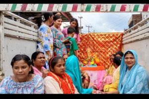 शोभायात्रा के दौरान भक्ति और उल्लास का ऐसा संगम देखने को मिला जिसने हर किसी को भावविभोर कर दिया। त्रिवेणी घाट पर श्रद्धालुओं ने गणपति को नम आंखों से विदा किया और अगले वर्ष पुनः आगमन की कामना की। इस मौके पर पूर्व सभासद राजेंद्र वर्मा,आरती वर्मा, गंगा देवी,सुदेश वर्मा, कार्तिक, आयुषी वर्मा, अभय वर्मा, शांति देवी, विराज वर्मा, नैना वर्मा,रामचंद्र वर्मा, नीलू वर्मा, रितिका पटेल,गंगा वर्मा, शिवा वर्मा, आशीष वर्मा, ऋषभ वर्मा, राधिका, उर्मिला देवी, ममता देवी, रानी वर्मा, रितु देवी, भूमि वर्मा, आदि वर्मा,शकुंतला देवी, साक्षी देवी आदि मौजूद रहे।